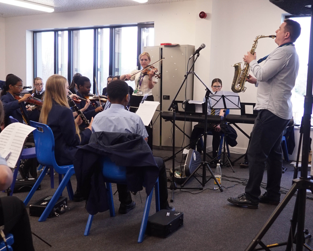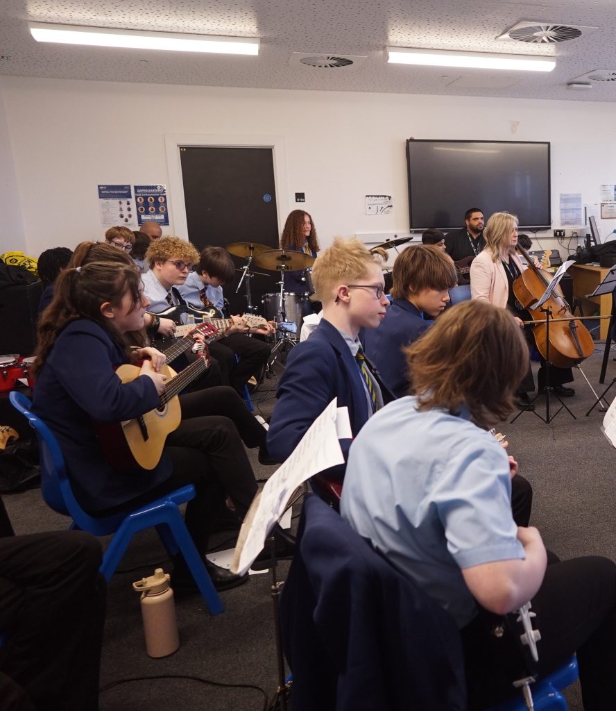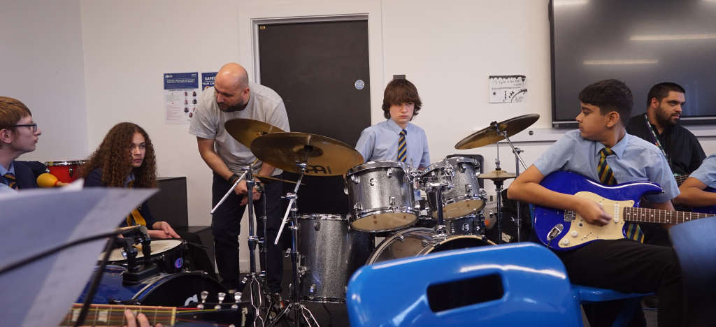 On the 13th March, 36 students that learn an instrument in the academy with Wolverhampton Music Service participated in a “Band in a Day” workshop where they learned the skills of performing as a group, teamwork, timing and accuracy. All students enjoyed the day immensley and we hope to host other days like this in the future. Many thanks to Ciaran O’Donnell and the Wolverhampton Music Service for putting on this event.